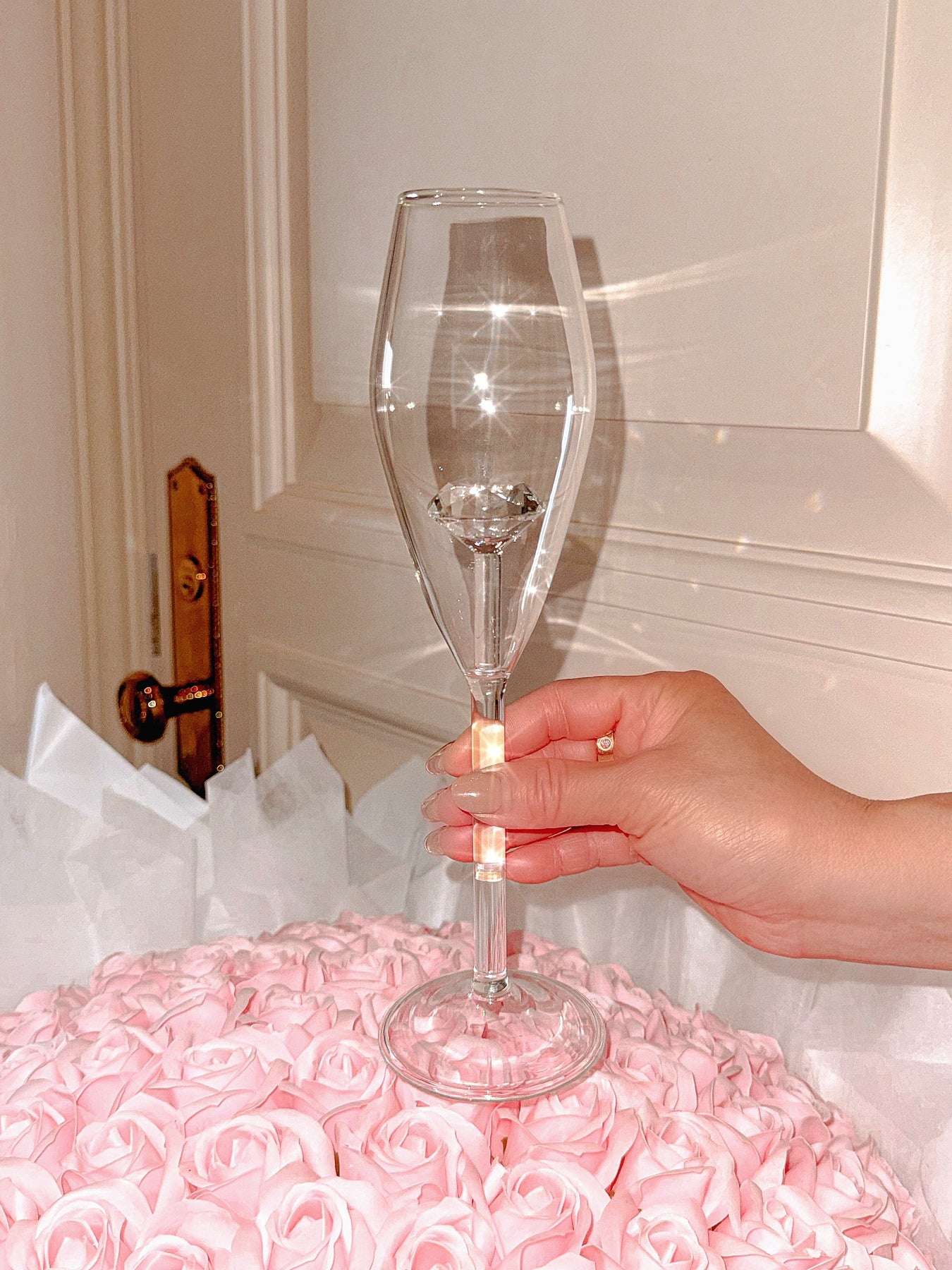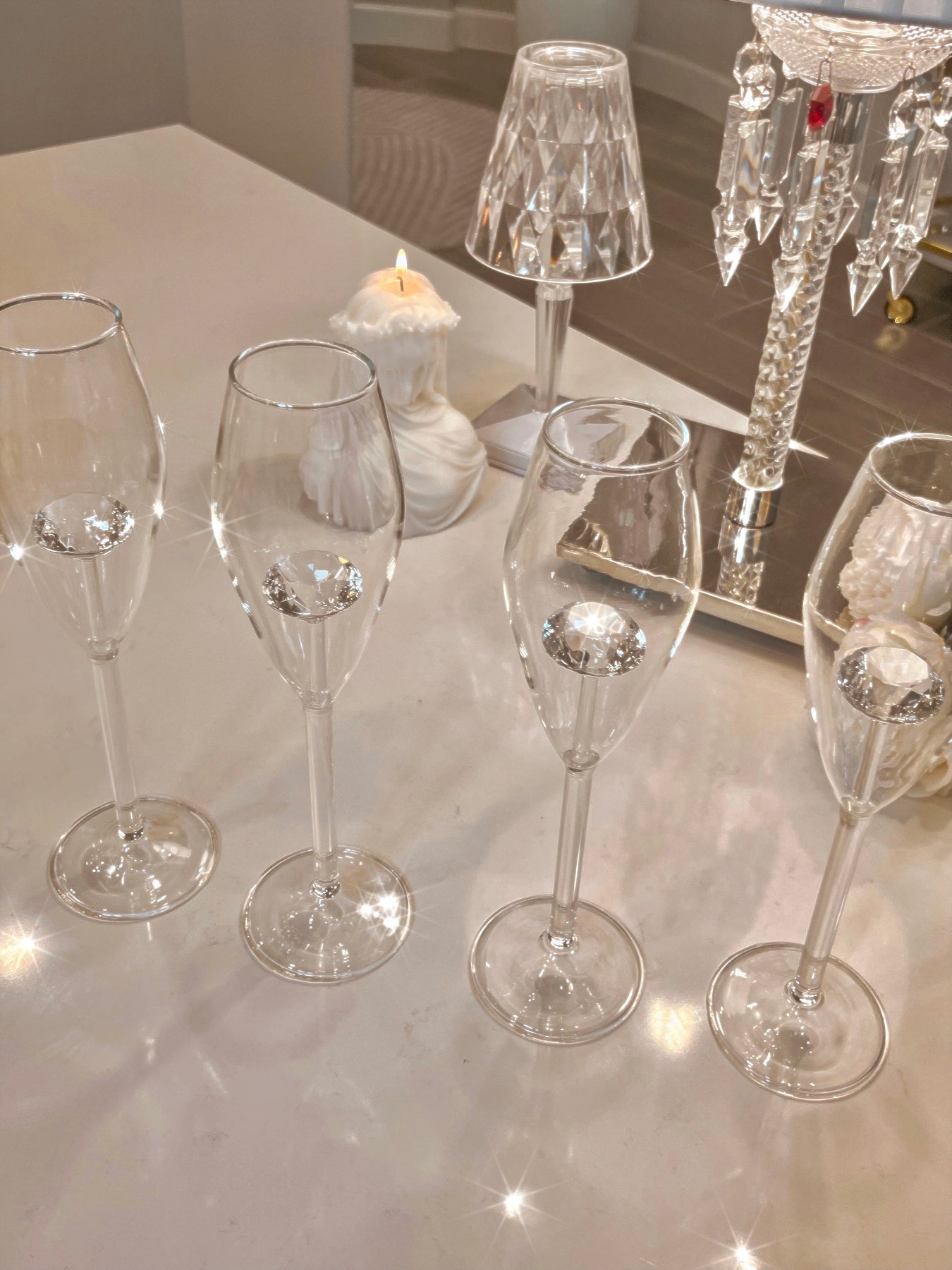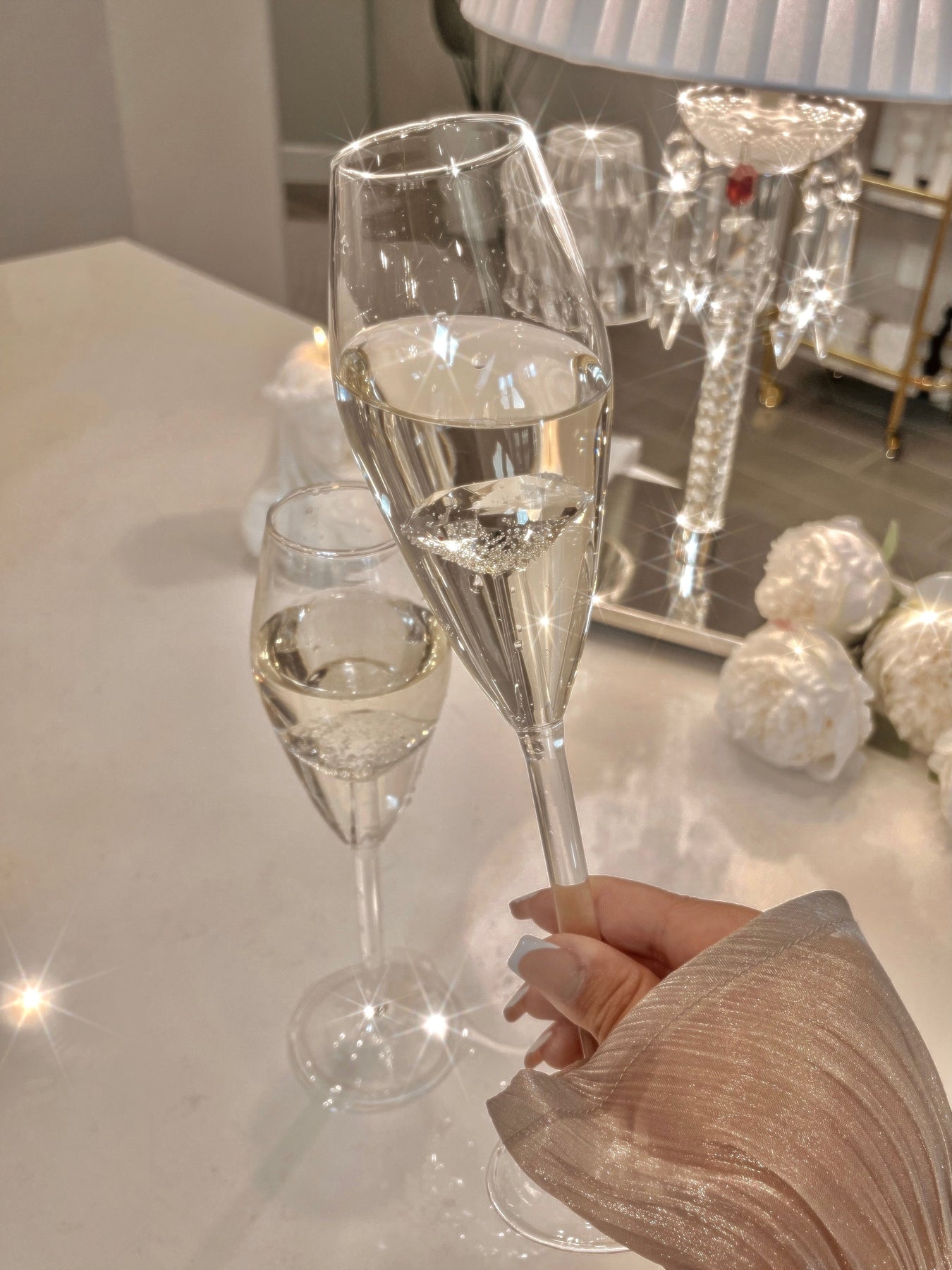 Sip in elegance, beneath the crystal light. The ‘100-Carat’ Diamond Champagne Flutes, crafted by hand. Each glass a treasure, uniquely designed.